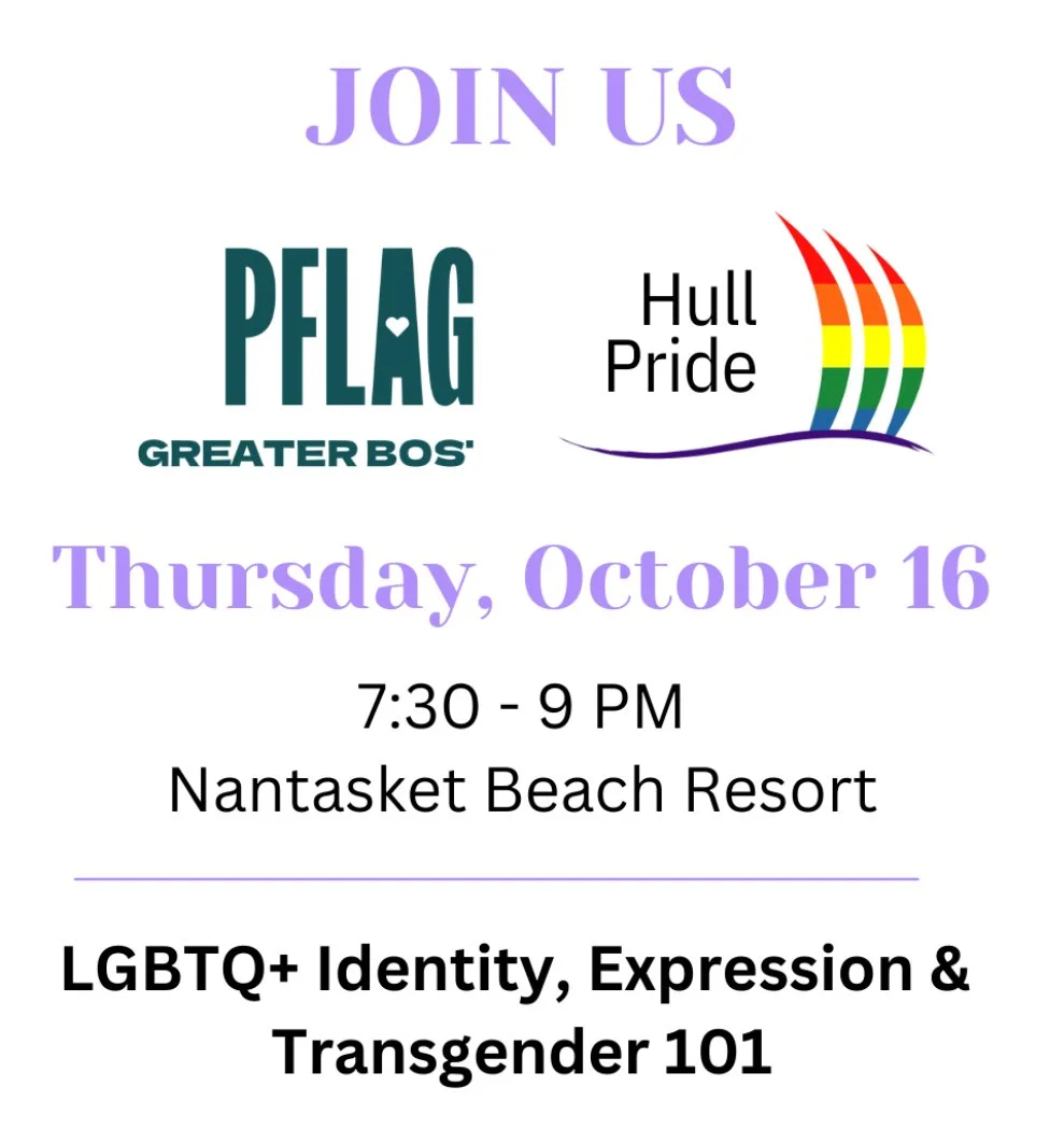 Hull Pride is partnering with PFLAG of Greater Boston to host an educational workshop on Thursday, October 16th at 7:30pm at the Nantasket Beach Resort.